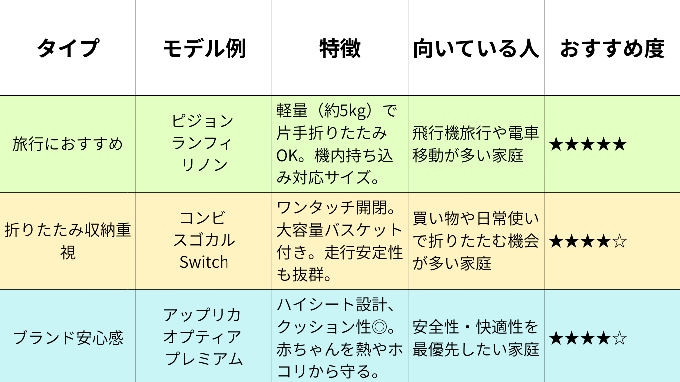 この記事では、旅行・収納・ブランド別におすすめのベビーカー3選を、私自身の実体験レビューを交えてご紹介します。