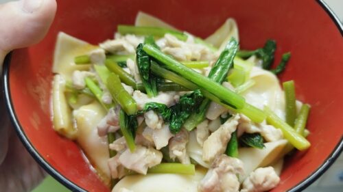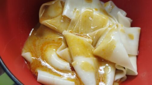 まるでうどんのようなコシがあり、タレの香味ラー油がよく絡みます。