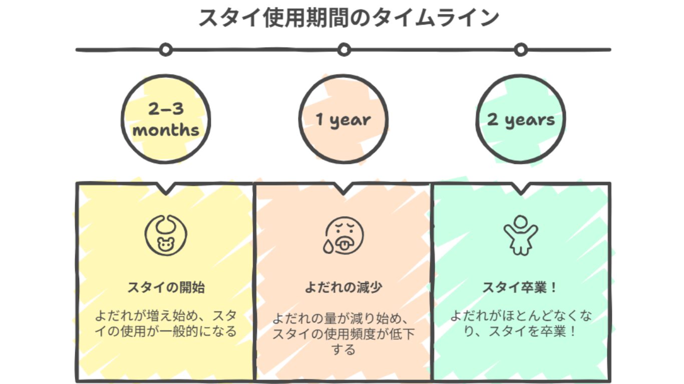 スタイは 生後2~3か月ごろから必要になることが多い です。