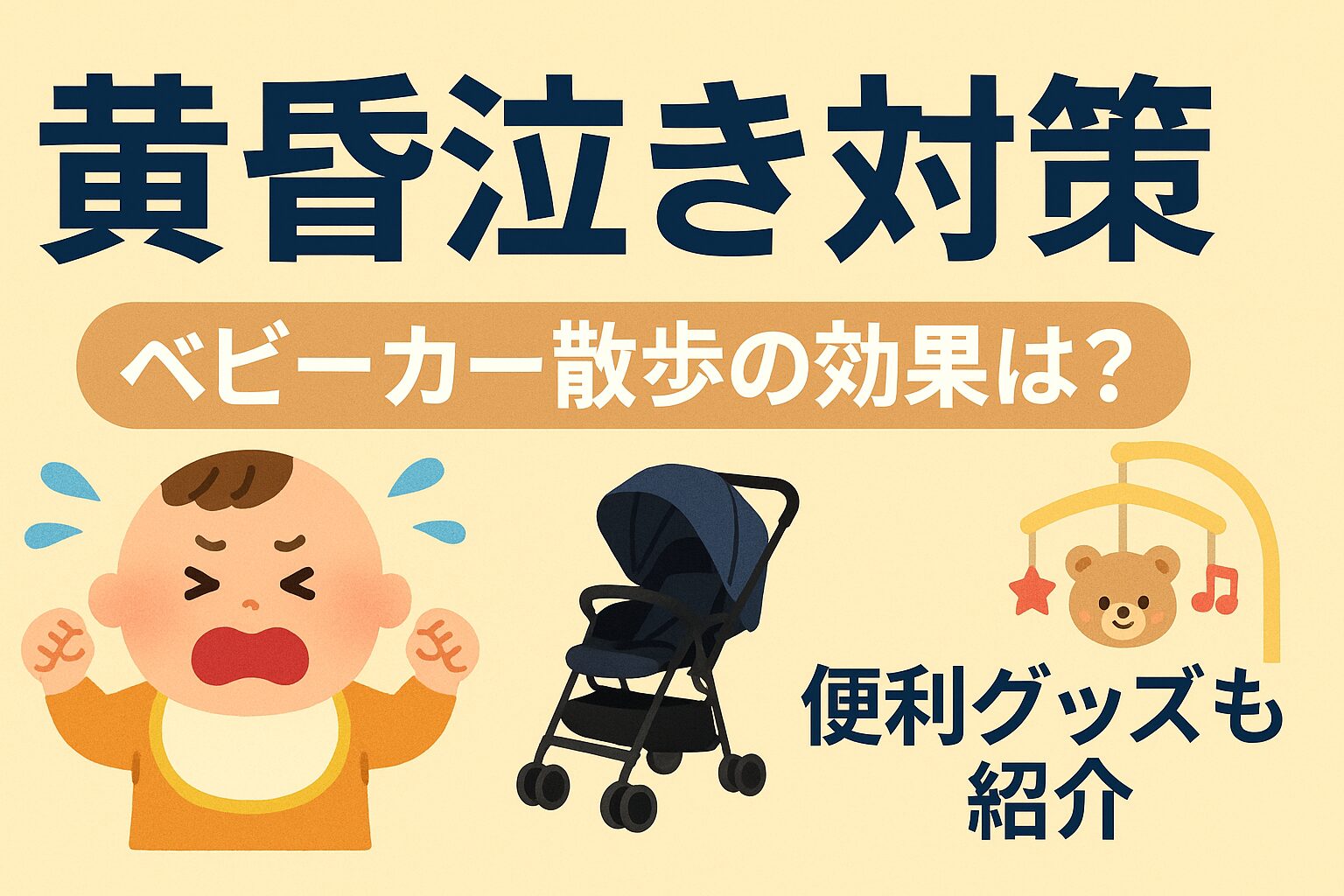 黄昏泣きに対して、僕が実際に試して感じた「ベビーカー散歩の効果」や「泣き止ませグッズの活用法」を、