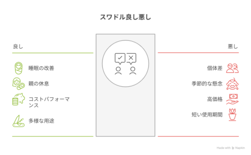 スワドルは、赤ちゃんの快眠だけでなく、夫婦の心の安定にもつながるアイテムだと感じました。